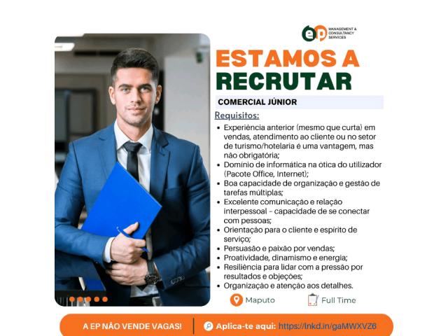O EP Management & Consultancy Services, está a contratar um COMERCIAL JÚNIOR para Maputo.
