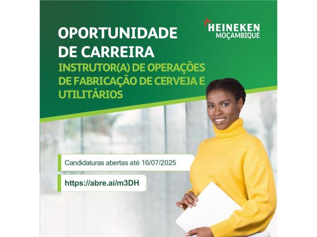 A HEINEKEN Moçambique está a contratar um(a) Instrutor(a) de Operações de Fabricação de Cerveja e Utilitários, para a fábrica em Maputo.